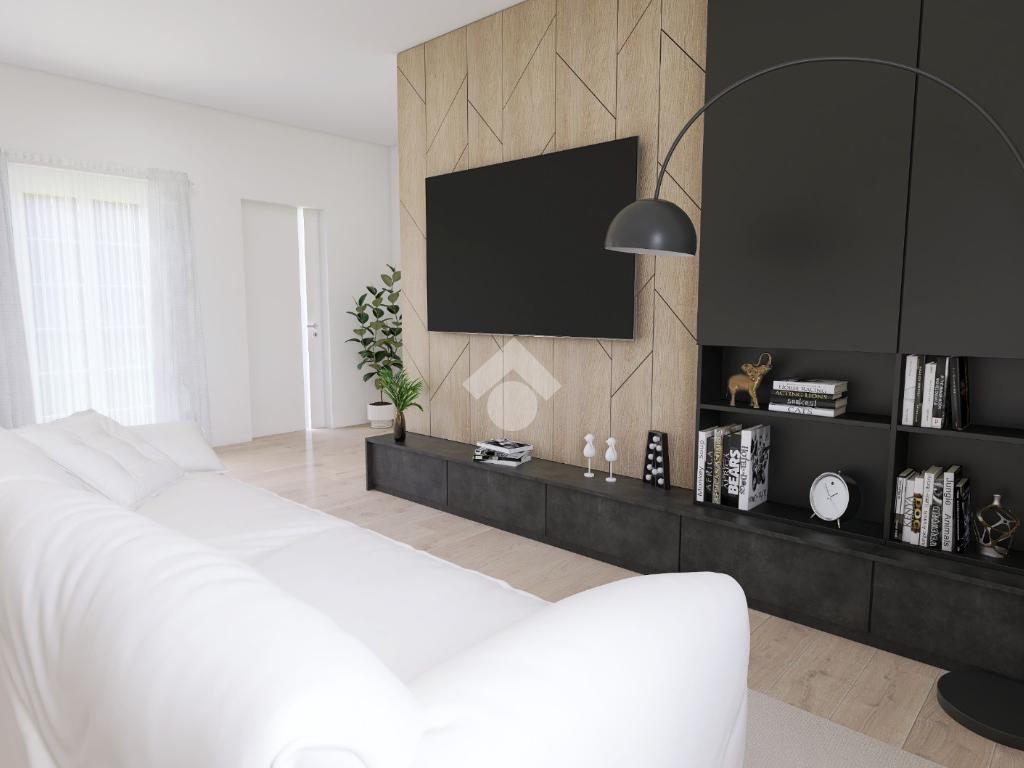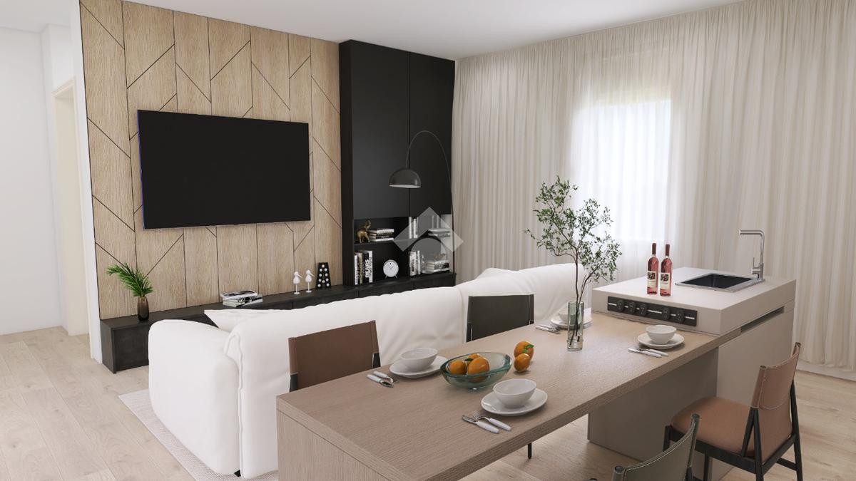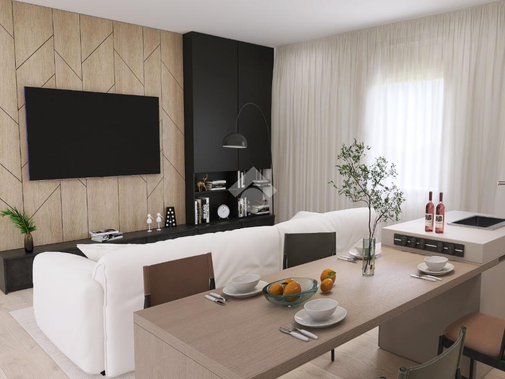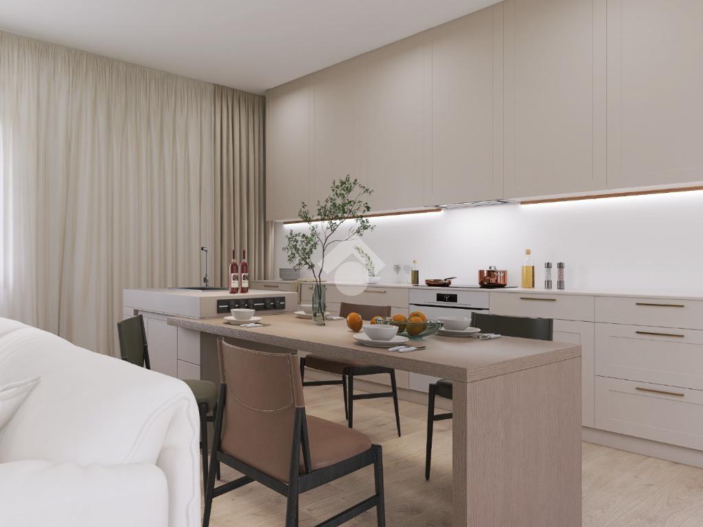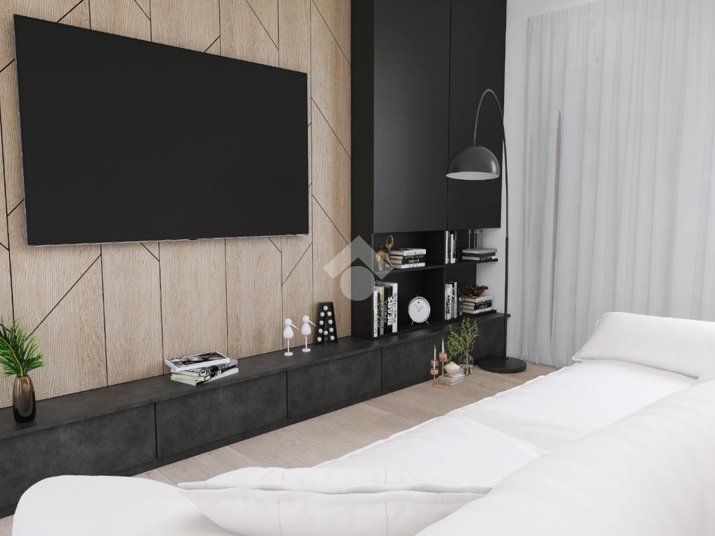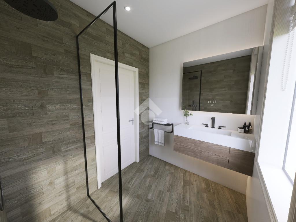 APP. L'appartamento si svilupperà su unico livello con ingresso indipendente dal ballatoio che offre l'accesso direttamente nella zona giorno con cucina open space e doppia esposizione. Il disimpegno accompagnerà nella zona notte che sarà composta da una camera da letto e un servizio finestrato con doccia.