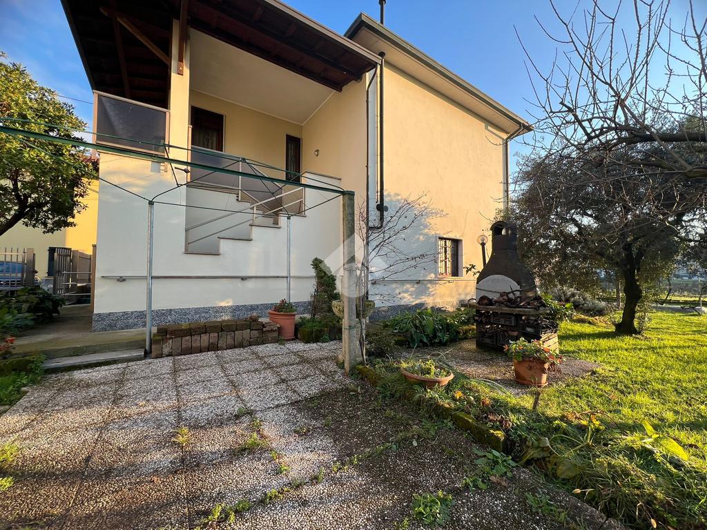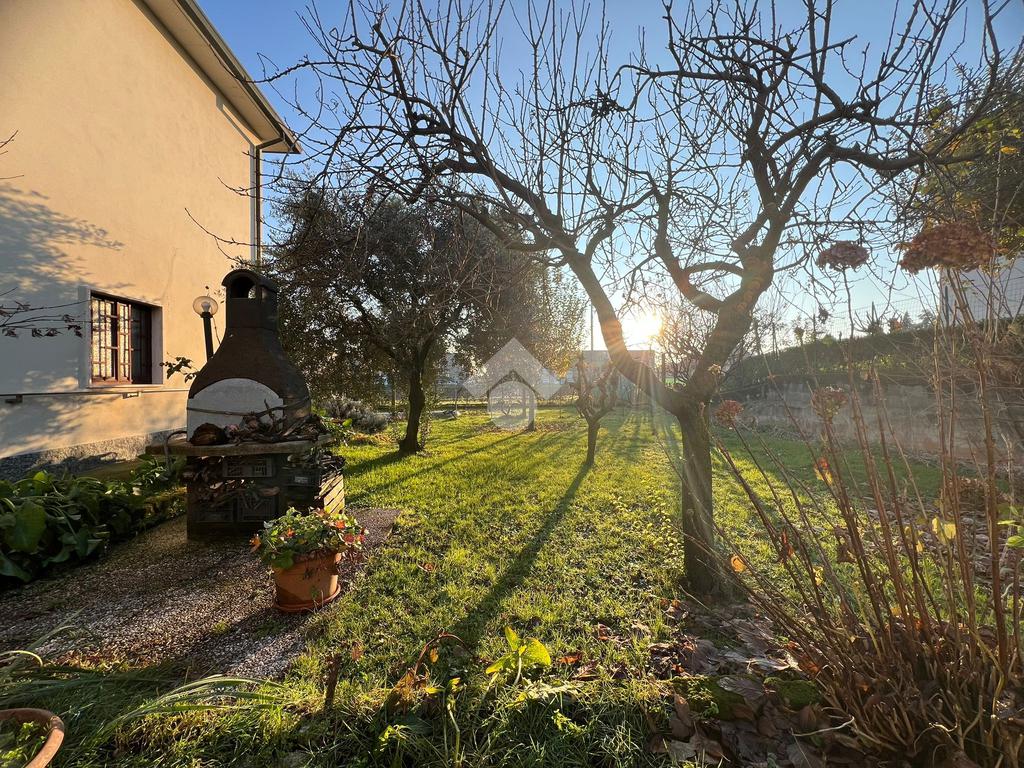 La villa è circondata da un ampio giardino piantumato che attualmente è in comproprietà tra i due appartamenti.