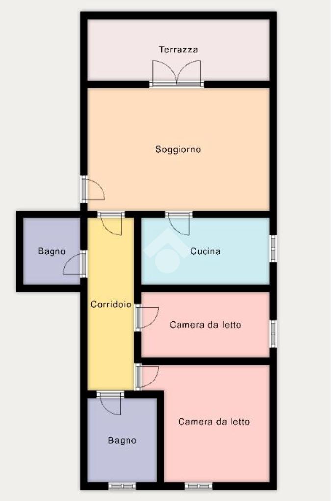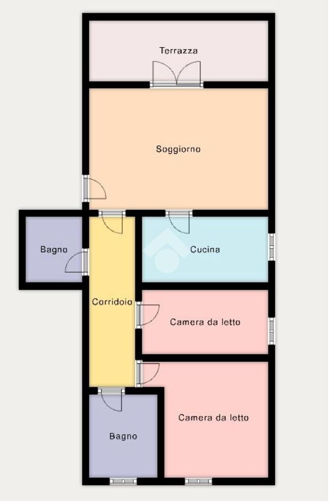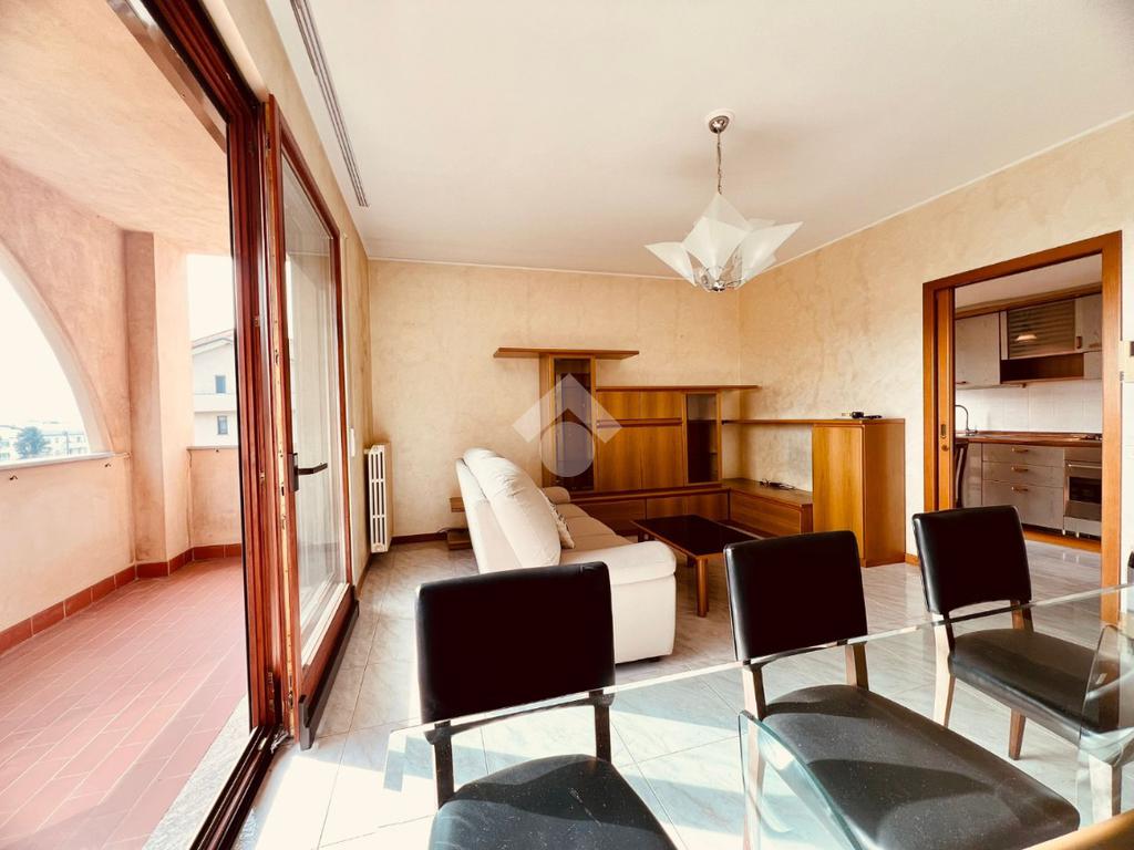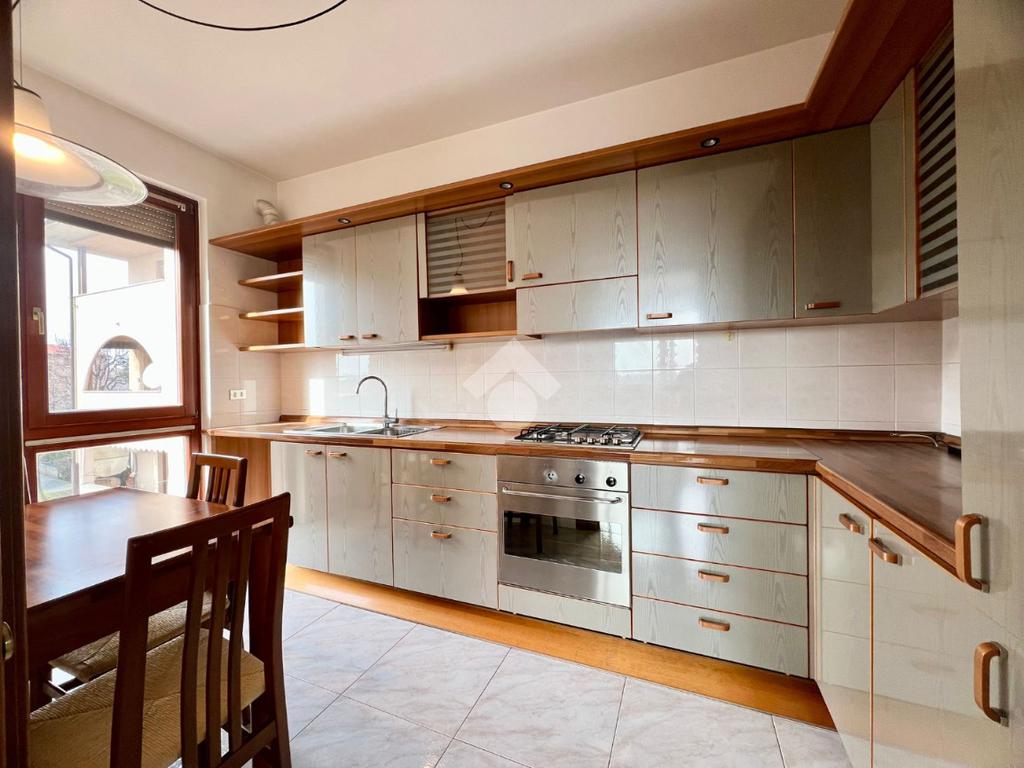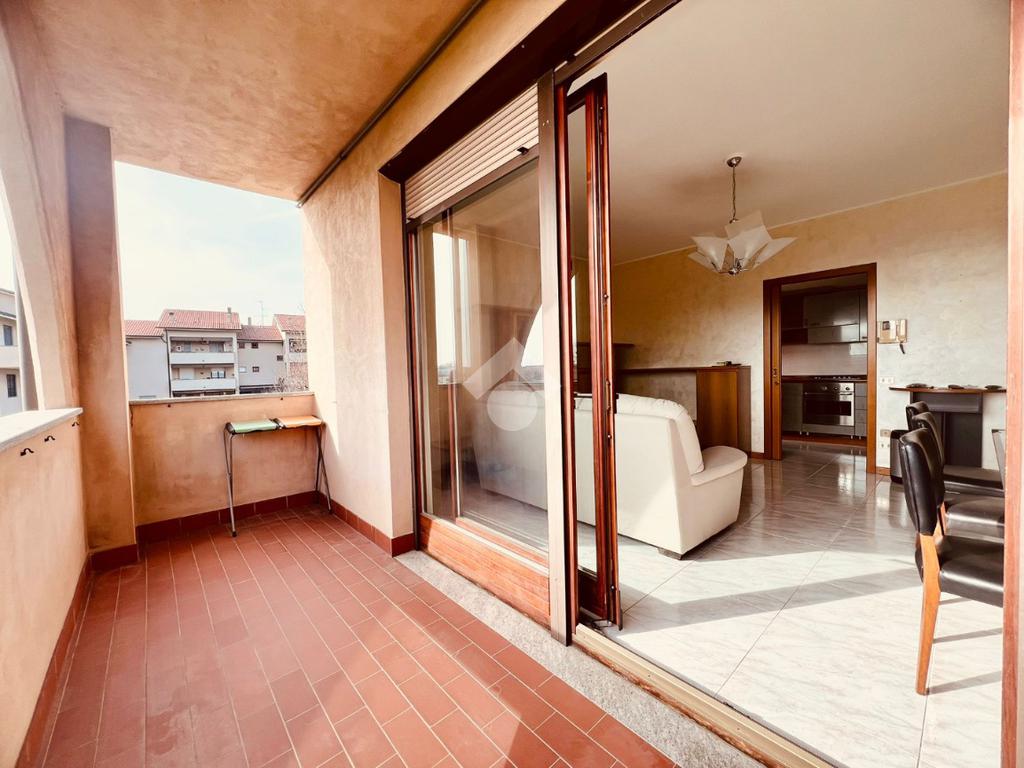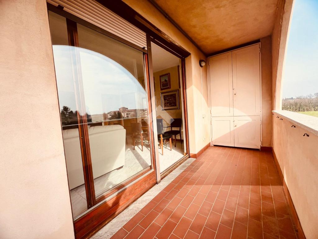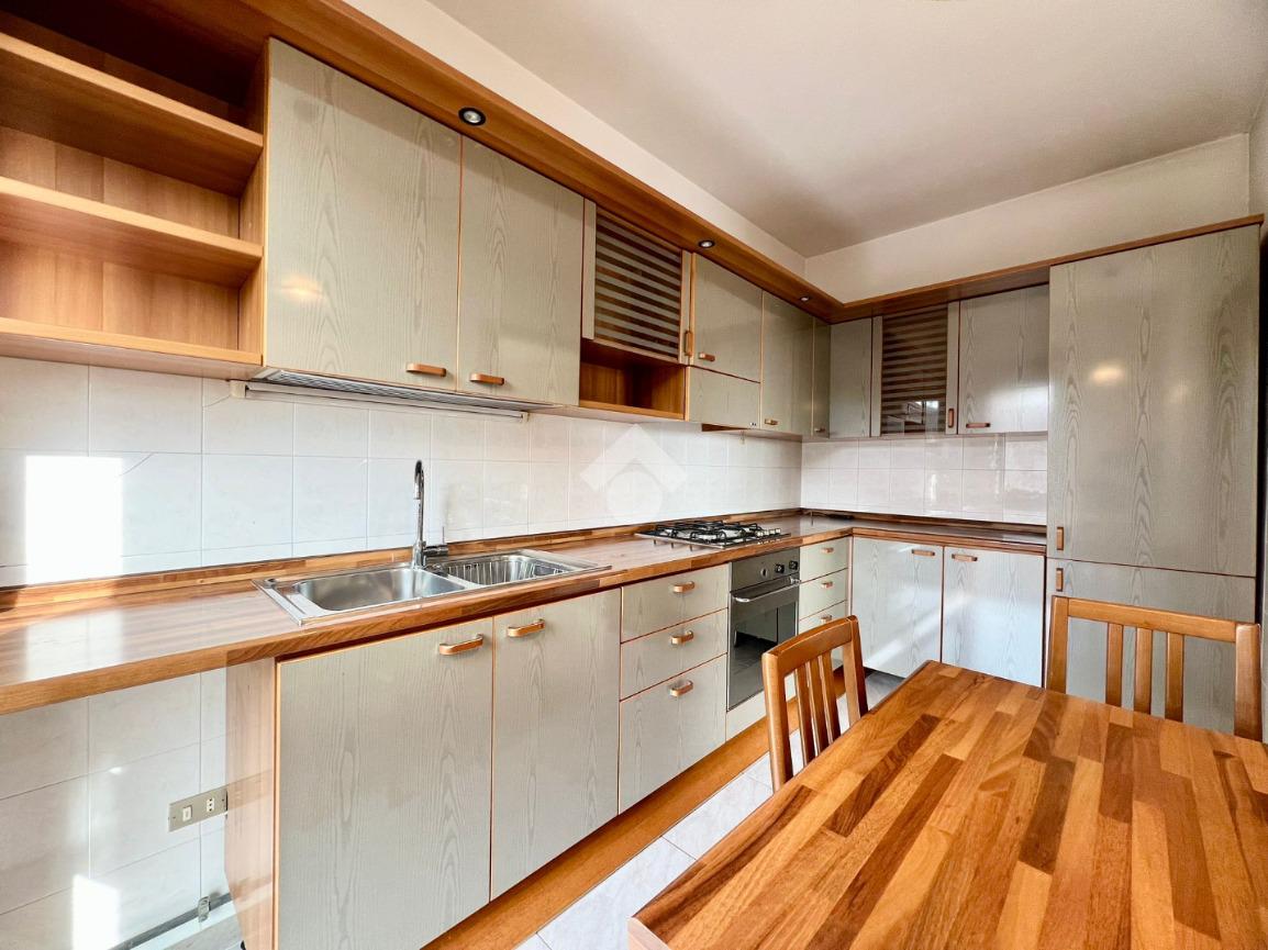 L'immobile è composto da un unico livello abitativo situato al secondo piano dell'edificio servito da ascensore. Si caratterizza per le ampie metrature degli spazi interni, per la tripla esposizione di cui gode (Nord/sud/ovest) e per il terrazzo coperto. L'accesso è direttamente nel soggiorno con gradevole affaccio sul terrazzo coperto esposto a sud, vera e propria estensione della zona giorno, godibile tutto l'anno. La cucina è separata ed abitabile.