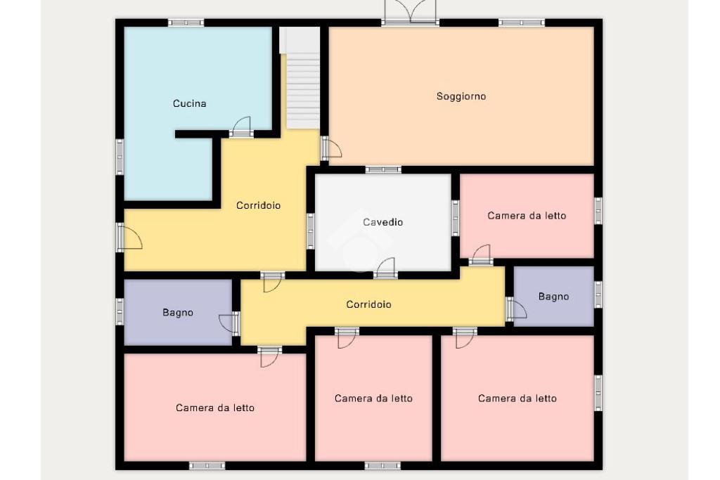 L’abitazione si sviluppa su un unico livello di generosa metratura, caratterizzato da ambienti spaziosi e ben distribuiti. Elemento distintivo della villa è il cavedio centrale con ampie vetrate, che dona ulteriore luminosità naturale agli spazi interni.