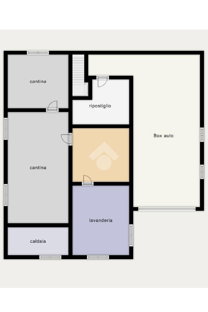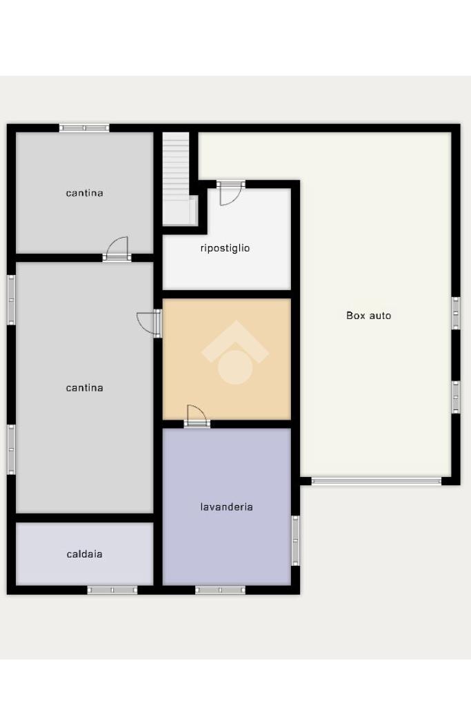 Una comoda scala interna conduce al piano seminterrato, dove troviamo diversi locali di servizio tra cui cantina, locale caldaia, lavanderia finestrata e accesso diretto all’ampio box doppio.